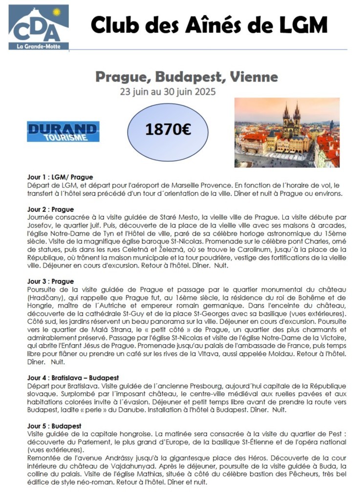 Prague, Budapest, Vienne du 23 juin au 30 juin 2025